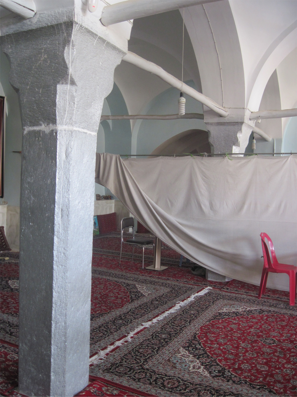مشخصات شبستان : خشتی آجری پنج طاقه و چشمه با چهار ستون سنگی حجاری شده که از سمت شرق و جنوب بنا دو ورودی دارد .مساحت شبستان تقریباَ ۳۰۰ متر مربع می باشد.شبستان از دو قسمت قدیمی تر با پایه های خشتی و قسمت جدید تر با پایه های سنگی به صورت شرقی غربی ساخته شده است