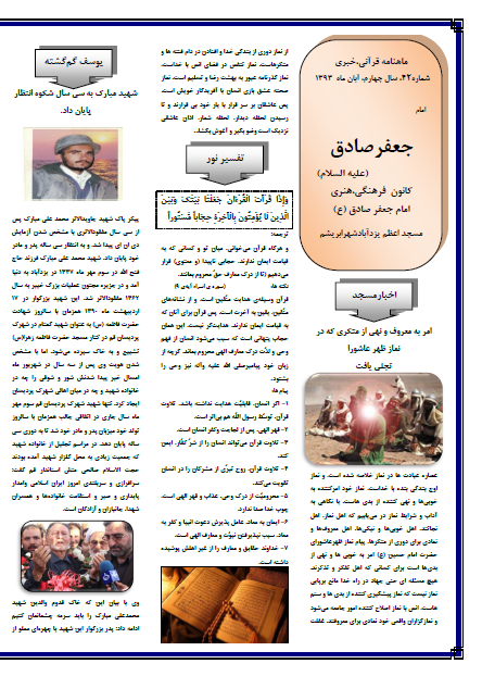این ماه هم به یاری خدا ماهنامه در مسجد اعظم یزدآباد منتشر شد .