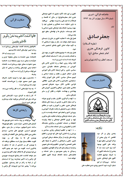 این ماه هم به یاری خدا ماهنامه در مساجد اعظم و الزهرا یزدآباد، منتشر شد .