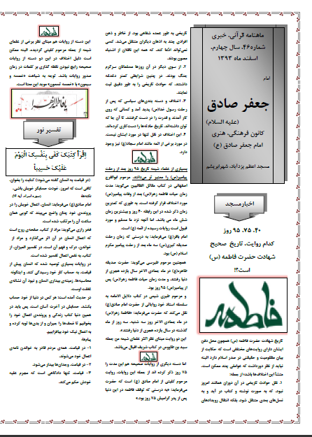 این ماه هم به یاری خدا ماهنامه در مساجد اعظم و الزهرا یزدآباد، منتشر شد .