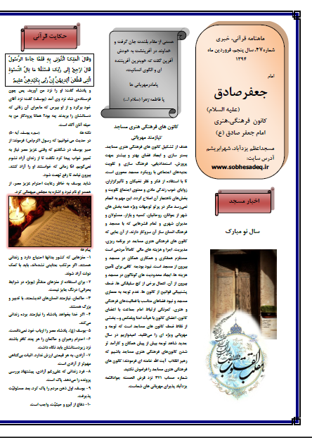 این ماه هم به یاری خدا ماهنامه در مساجد اعظم و الزهرا یزدآباد، منتشر شد .