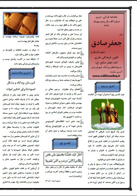 این ماه هم به یاری خدا ماهنامه  در مساجد اعظم و الزهرا یزدآباد، منتشر شد.