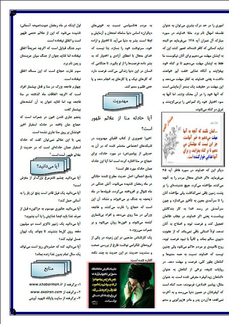این ماه هم به یاری خدا ماهنامه  در مساجد اعظم و الزهرا یزدآباد، منتشر شد.
