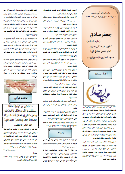 این ماه هم به یاری خدا نشریه در مسجد اعظم یزدآباد منتشر شد .